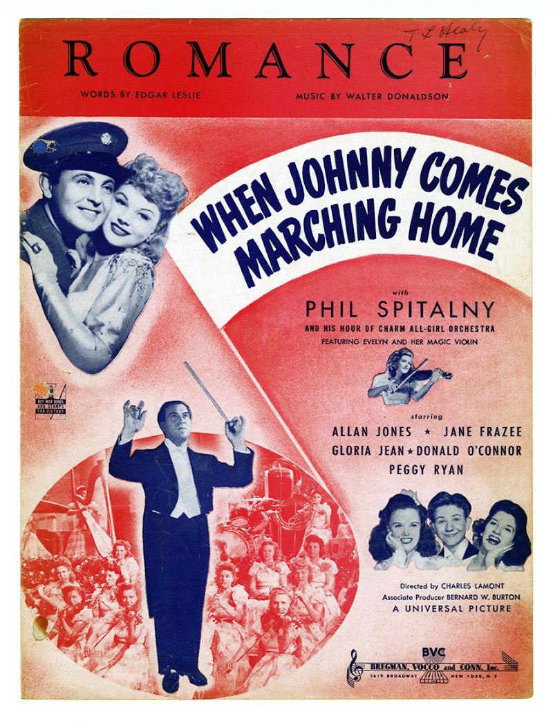 Allan Jones, Jane Frazee, Gloria Jean, Donald O'Connor, Peggy Ryan, Evelyn, and Phil Spitalny (photographs) [illustration]