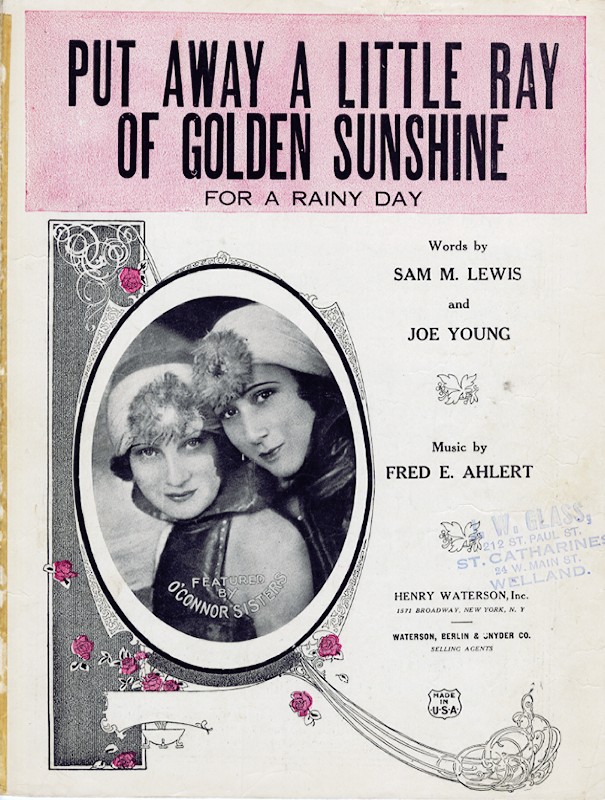 Put away a little ray of golden sunshine for a rainy day [first line of chorus]