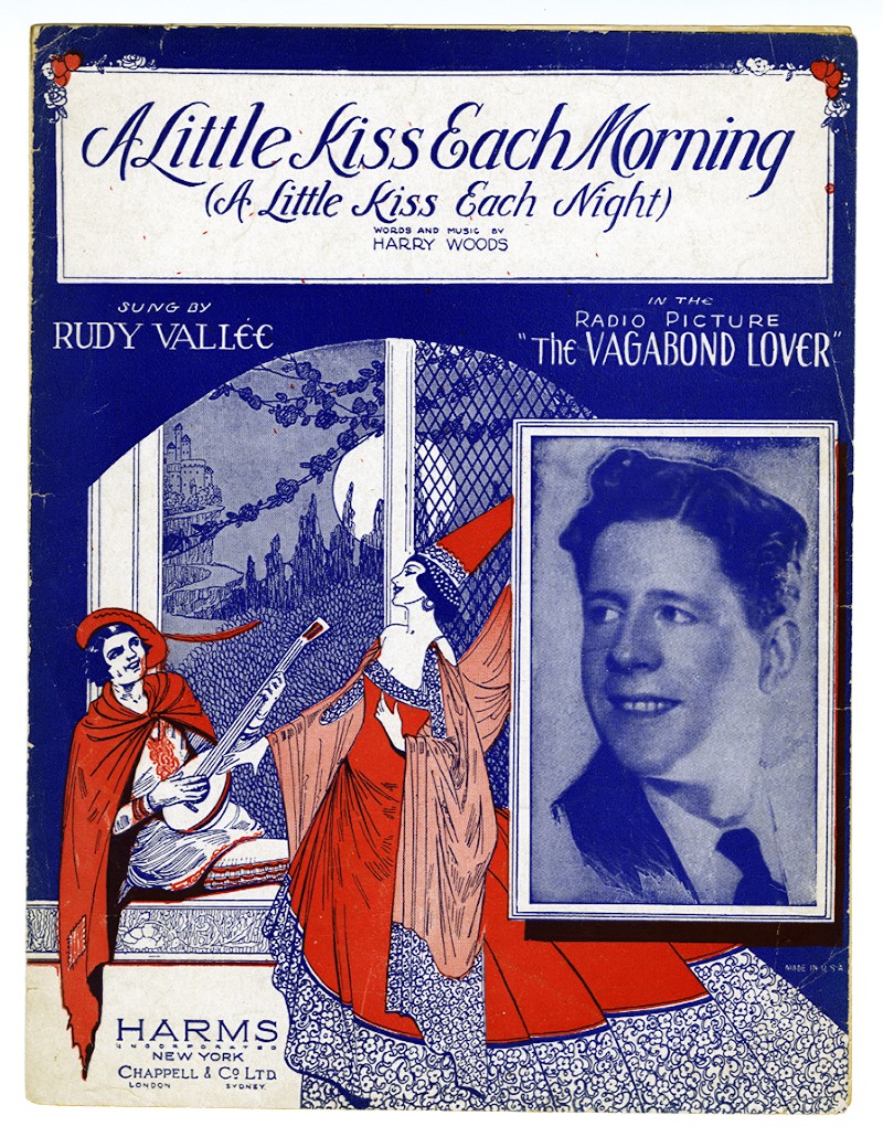Man playing lyre to woman ; Rudy Vallée (photograph) [illustration]