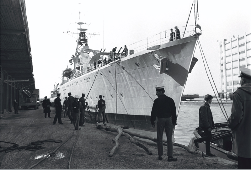 dc.description.abstract | Image of military ship at dock; several sailors are mooring ship or vice versa; men in officer or captain's outfits supervise | en_US |