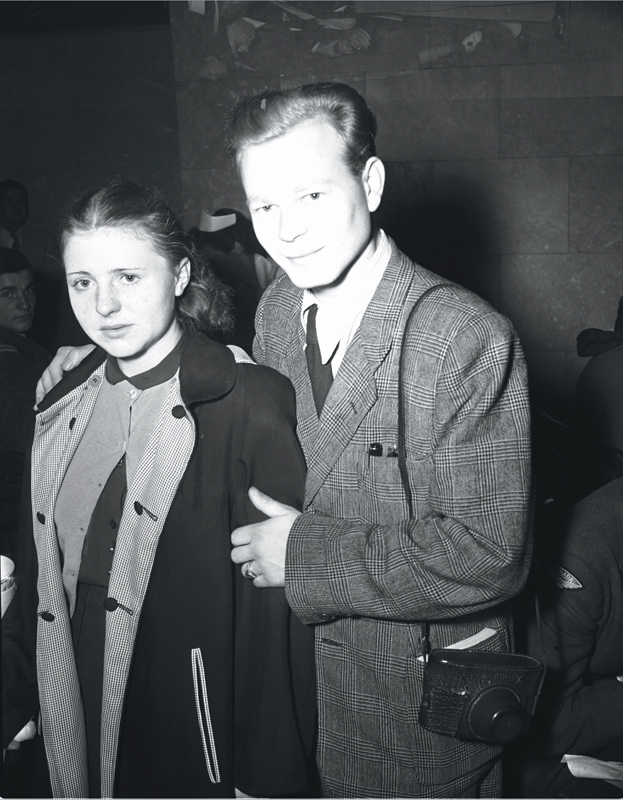 | dc.description.abstract | Image of man, carrying camera bag over left shoulder, standing with hands placed on right shoulder and left arm of woman | en_US |