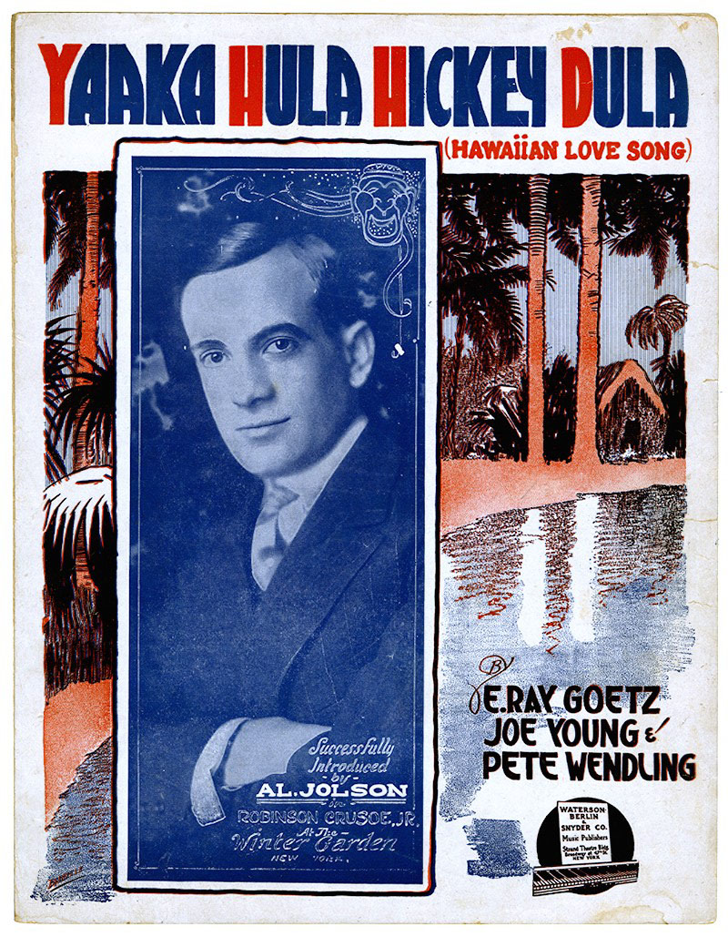 Palm trees sand water ; Al. Jolson (photograph) [illustration]