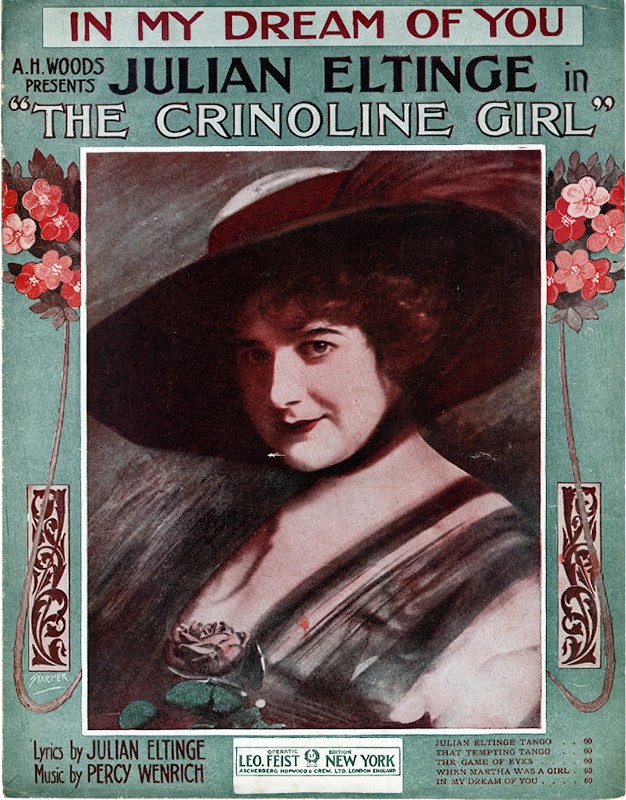 Flowers; photograph: woman in hat with pursed lips [illustration]