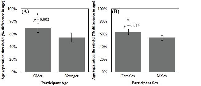 It is surprising how easily we are able to recognize people whom we have not seen in many years, somehow compensating for the aging-related facial changes that occurred. We measured the limits of the ability to recognize faces across the lifespan. Images of five males and five females at young and old ages were morphed in 10% increments to create aged face images across the lifespan.Fifty-eight participants (28 females) judged whether pairs of photographs were the same or different identity. Women outperformed men for female faces, exhibiting a sex difference and own sex bias. Additionally, an own-age bias was found for older participants, who outperformed their younger counterparts with older stimuli. It appears that the recognition of faces is affected by the own - age and own - sex biases, potentially allowing us to remember some people better than others, thus mediating our interaction with the world.