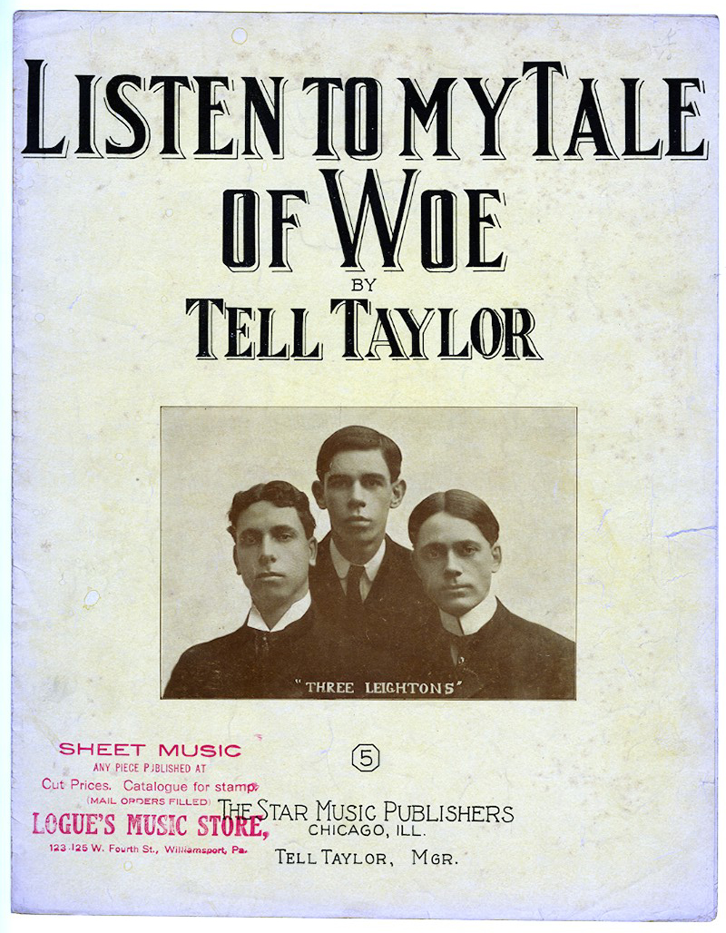 Sheet Music Any Piece Published At Cut Prices. Catalogue for stamp (mail orders filled) Logue's Music Store, 123.125 W. Fourth St. Williamsport, Pa. [dealer stamp]