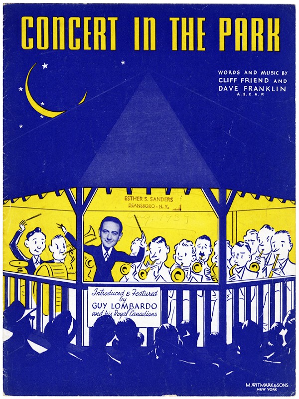 Orchestra performing in gazebo ; Guy Lombardo (photograph) [illustration]