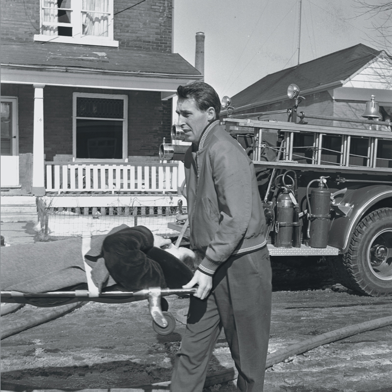 | dc.description.abstract | Image of man carrying person in stretcher, with fire truck in background | en_US |