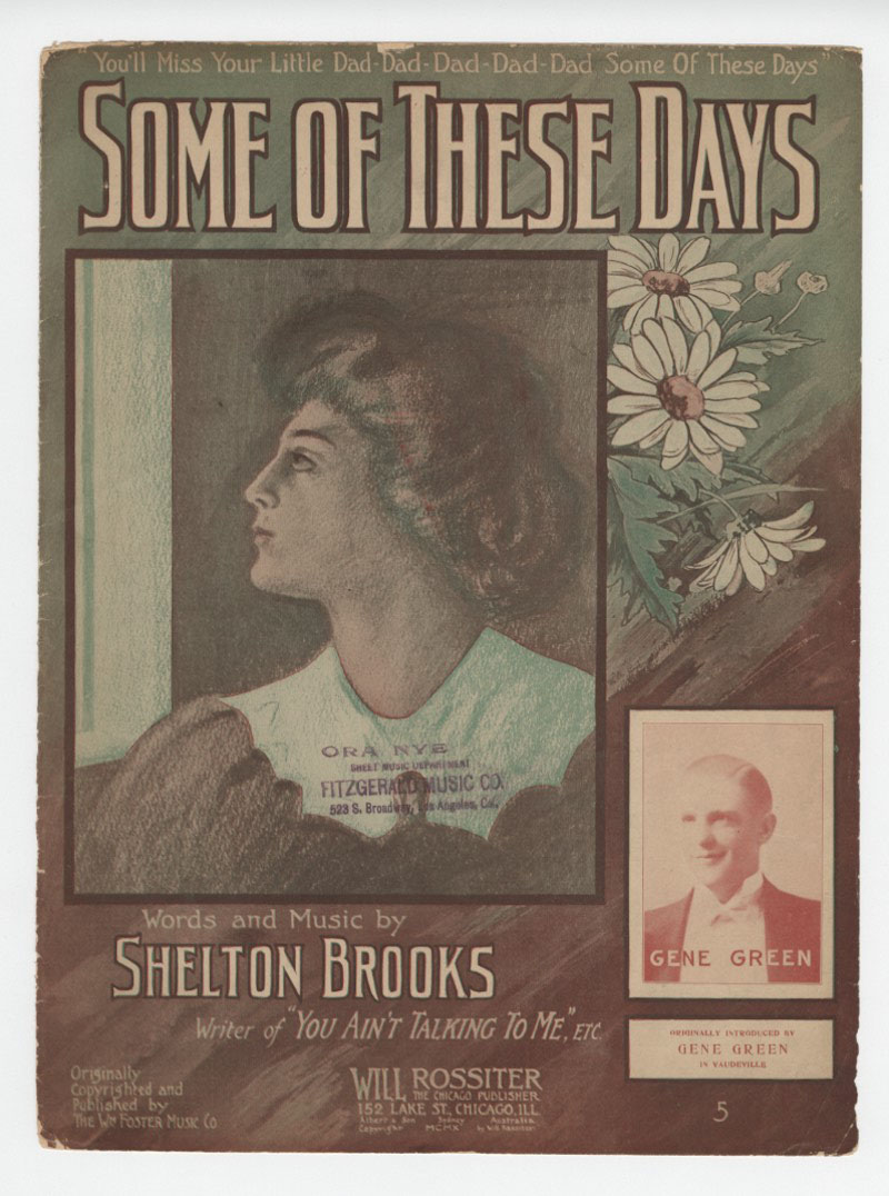 Ora Nye, Sheet Music Department, Fitzgerald Music Co., 523 S. Broadway, Los Angeles, CA [dealer stamp]