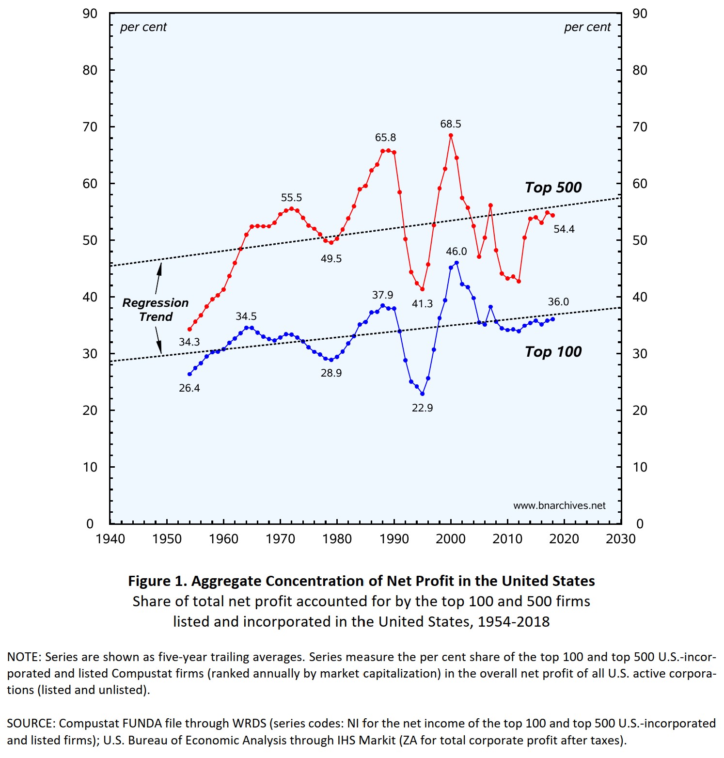 How should we measure the power of dominant capital? Economists, although seldom if ever referring to ‘dominant capital’, quantify the relative size of large firms by measuring their so-called aggregate concentration. But for all their insight, measures of aggregate concentration have one serious shortcoming: they tend to underestimate the power of dominant capital and its temporal growth – by a lot.