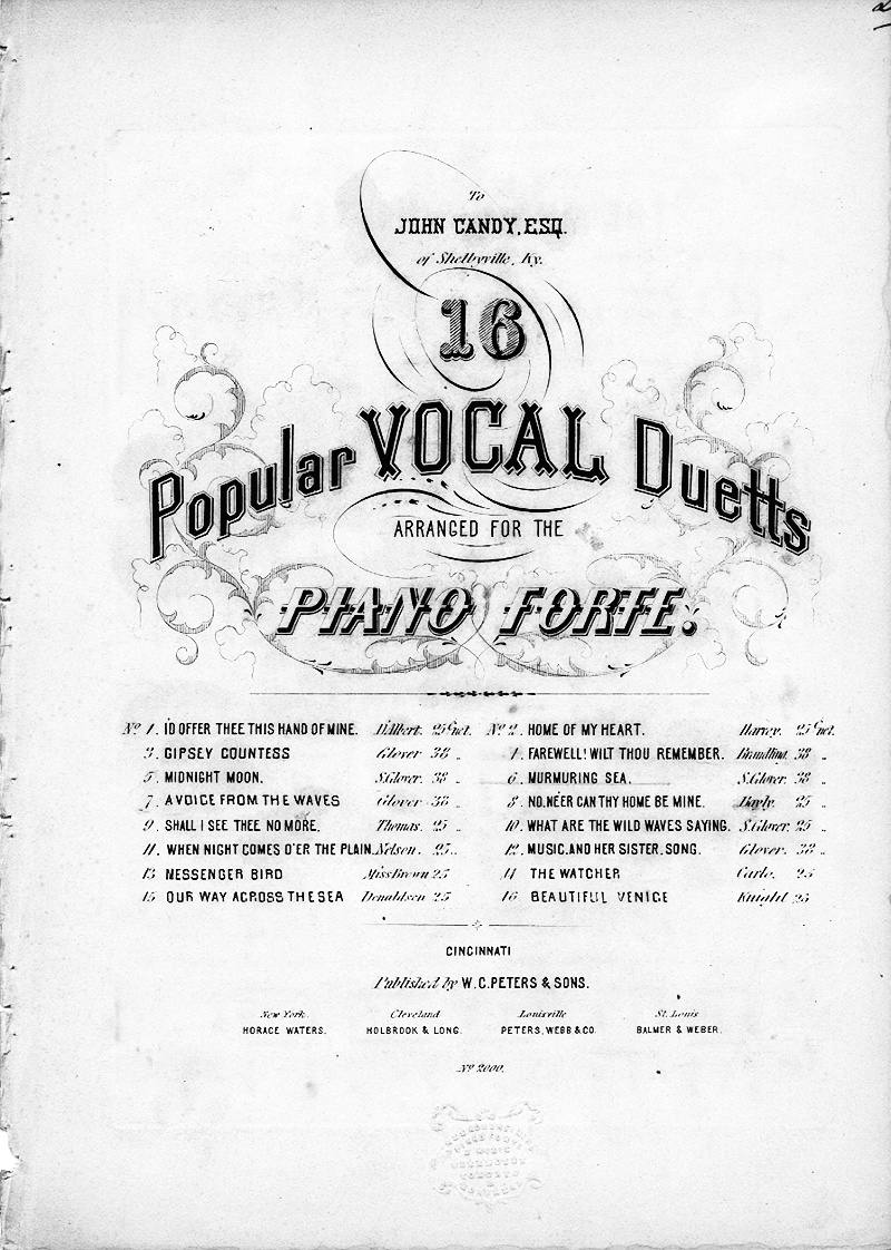 Publisher's advertisement on front cover, includes list of songs. [note]