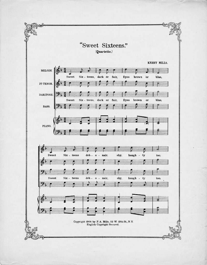 Sweet sixteens dark or fair eyes brown or blue [first line]