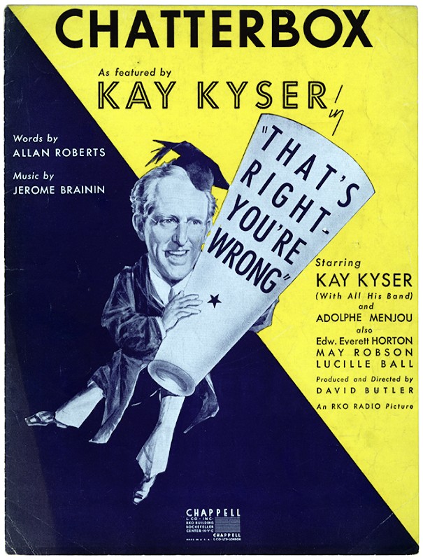 As featured by Kay Kyser in "That's right - you're wrong" ; starring Kay Kayser (with all his band) and Adolphe Menjou also Edw. Everett Horton, May Robson and Lucille Ball ; produced and directed by David Butler ; an RKO Radio picture [note]