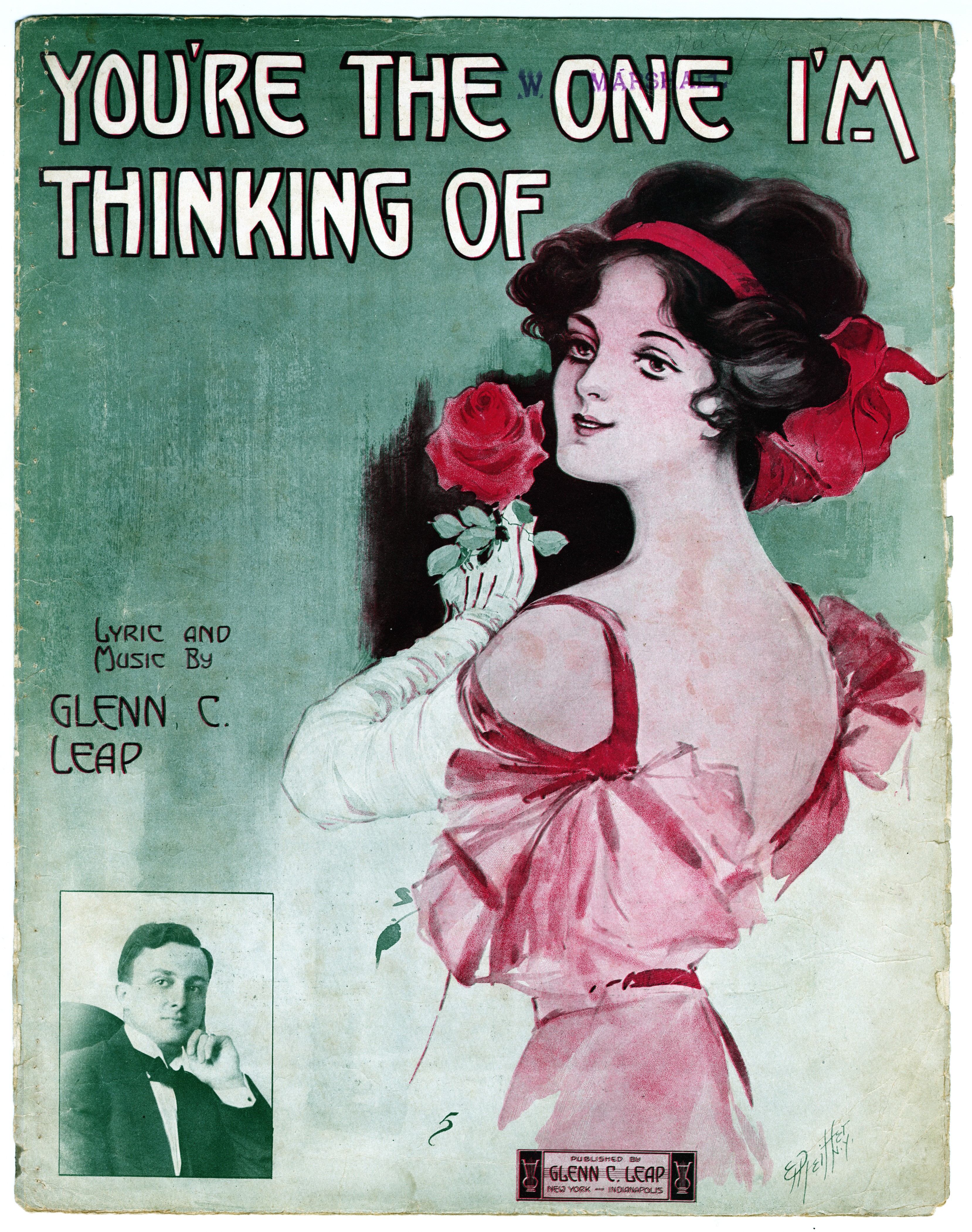 Woman wearing pink dress holding flower ; Glenn C. Leap (photograph) [illustration]