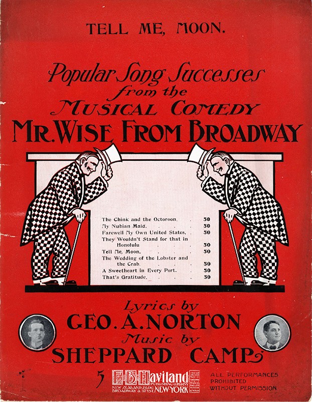 Two men with walking sticks bowing ; photograph: Geo. A. Norton & Sheppard Camp [illustration]