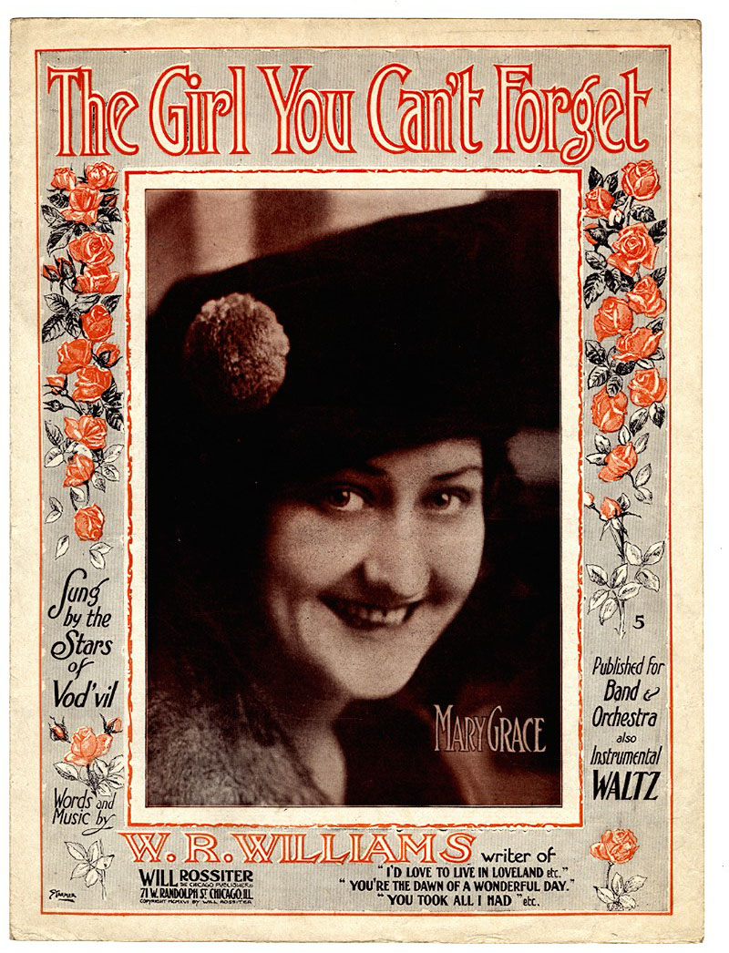 The girl you can't forget : sung by the stars of Vod'vil ; published for band & orchestra also instrumental waltz ; writer of "I'd love to live in loveland etc.", "you're the dawn of a wonderful day.", "you took all I had" etc.