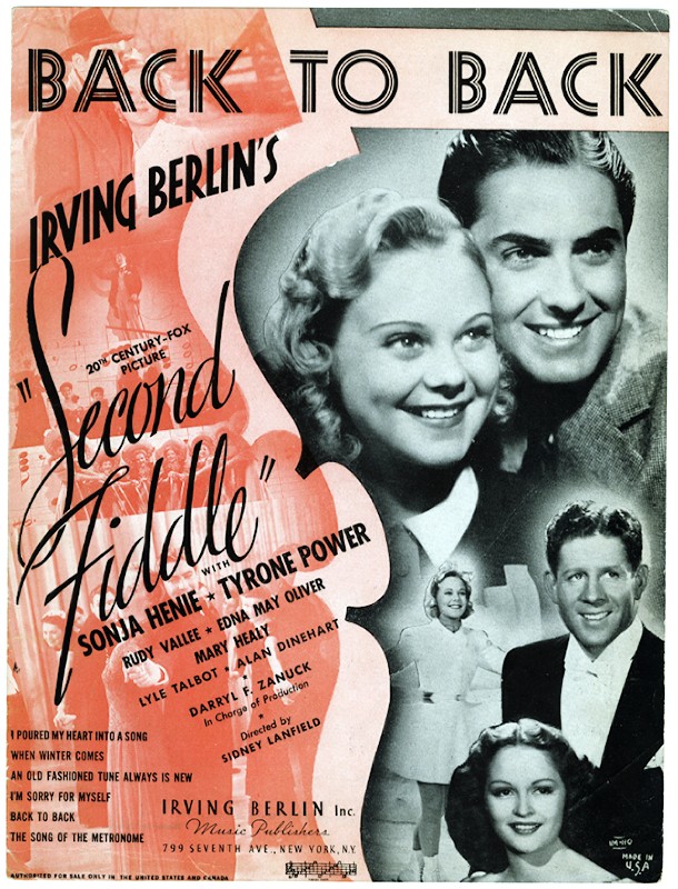 Scenes from the film "second fiddle" ; Sonja Henie, Tyrone Power, Rudy Vallee, and Mary Healy (photographs) [illustration]