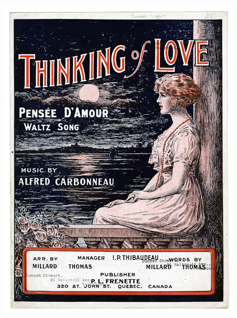 Woman sitting on a ledge, flowers, moon, [illustration]