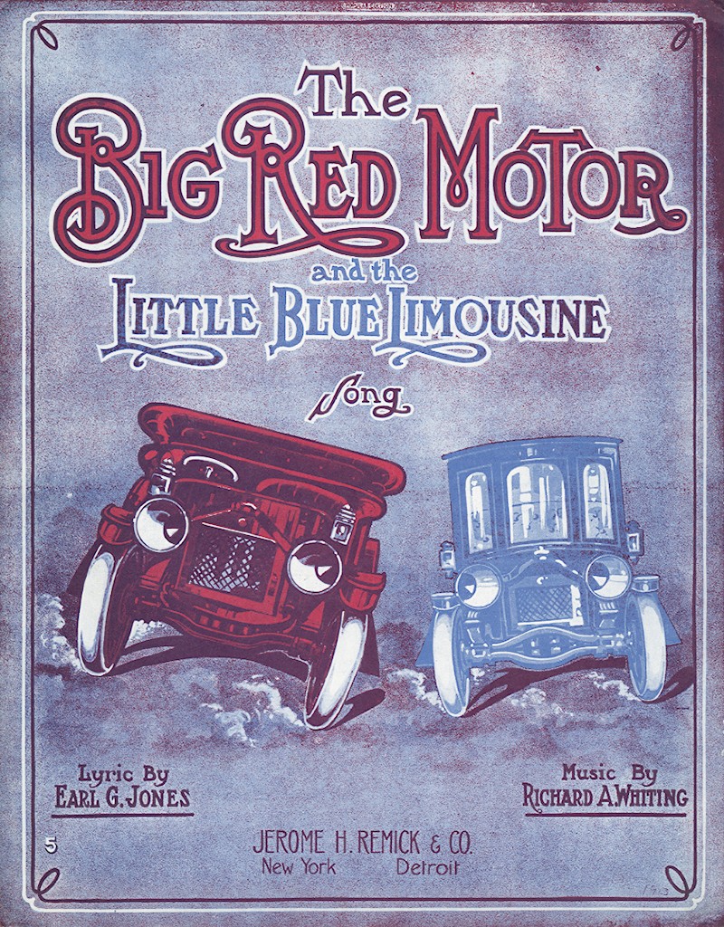 The big red motor and little blue limousine.