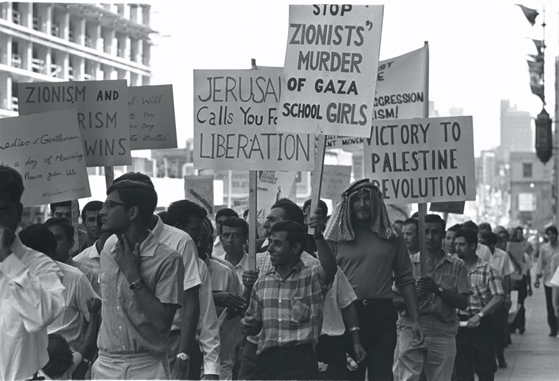 | dc.description.abstract | Image of demonstrators marching, including one man wearing the keffiyeh, and some carrying placards, one of which reads "Stop Zionists' murder of Gaza school girls" | en_US |