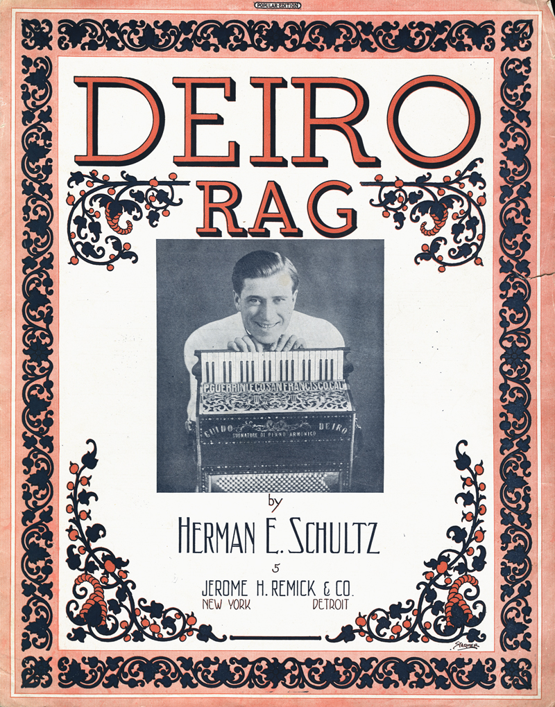 Photographic portrait of Herman E. Schultz with accordian. [illustration]