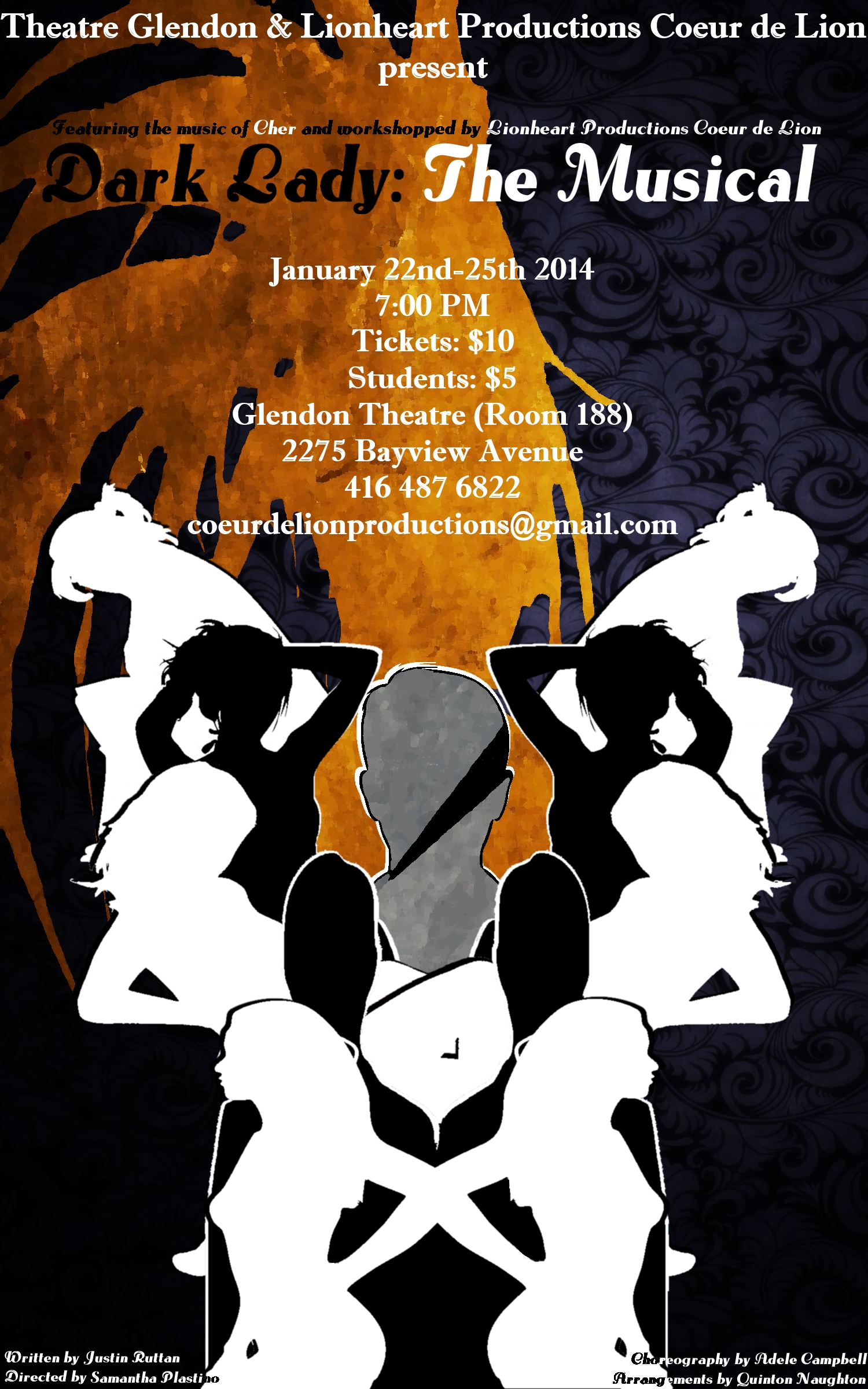 Archival file for the Glendon College production of Justin Ruttan's Dark Lady directed by Justin Ruttan. The play was performed January 22, 2014 - January 25, 2014