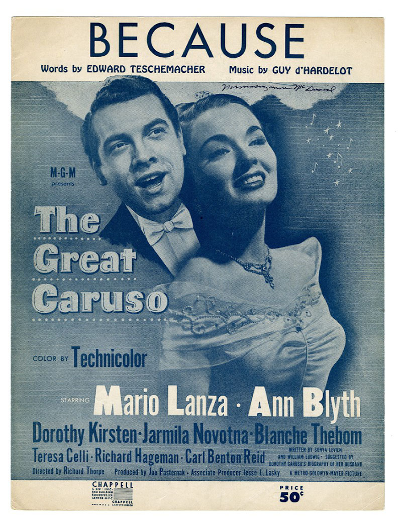 (S)tarring Mario Lanza, Ann Blyth, Dorothy Kirsten, Jarmila Novotna, Blanche Thebom, Teresa Celli, Richard Hageman and Carl Benton Reid ; written by Sonya Levien and William Ludwig ; suggested by Dorothy Caruso's biography of her husband ; directed by Richard Thorpe ; produced by Joe Pasternak ; associate producer Jesse L. Lasky ; a Metro-Goldwyn-Mayer picture [note]