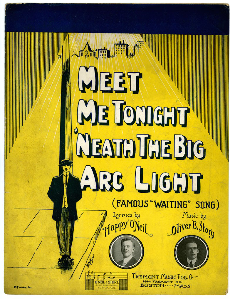 Man standing beneath streetlight ; Oliver E. Story and "Happy" O'Neil (photographs) [illustration]