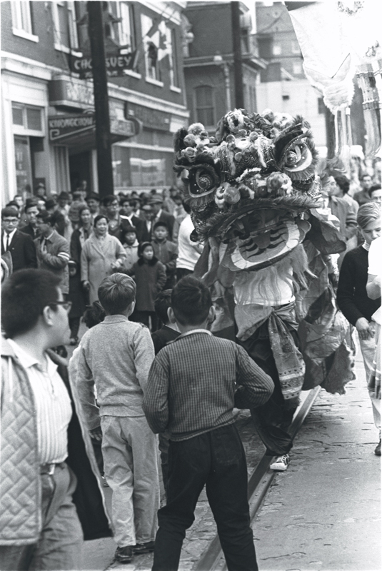 | dc.description.abstract | Image of Chinese lion dance procession in street with streetcar tracks, with sign marked "Chop suey" in background | en_US |