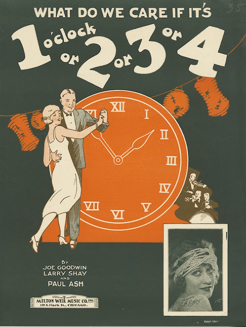 Clock, man, woman, dancing; photo:Ruth Etting [illustration]