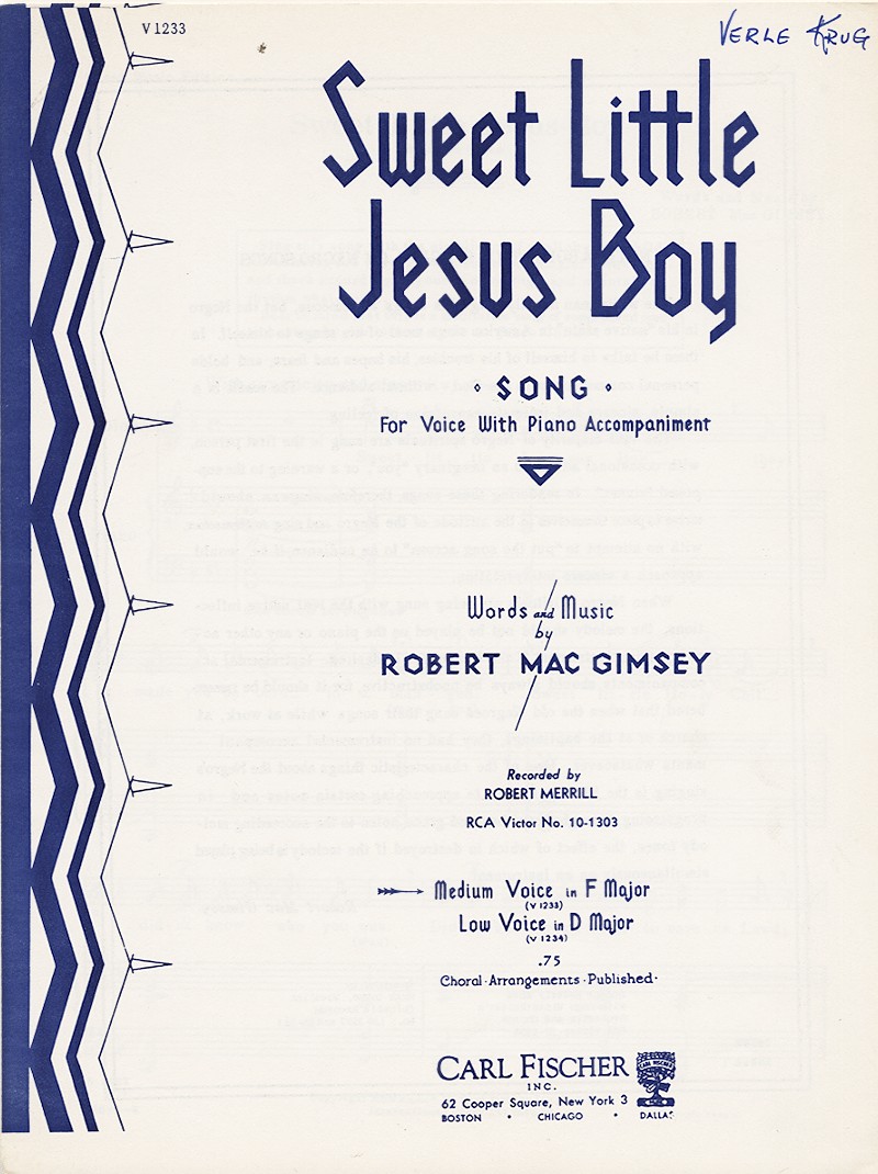 Note about how the song should be sung ("intimately to the Jesus Child" on first page of music. [note]