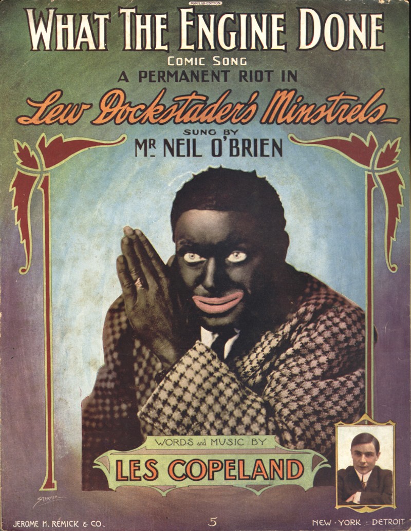 Neil O'Brien (?) in blackface; small portrait without make-up. [illustration]