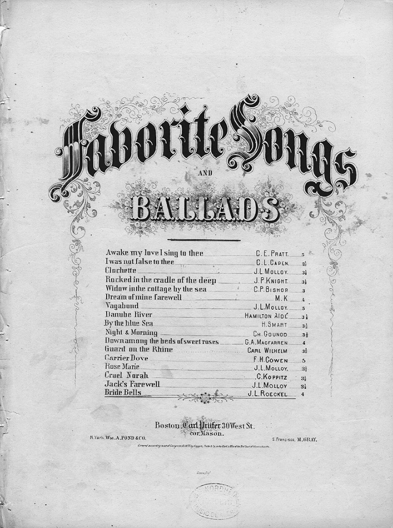 Publisher's advertisement on front cover, includes list of songs. [note]