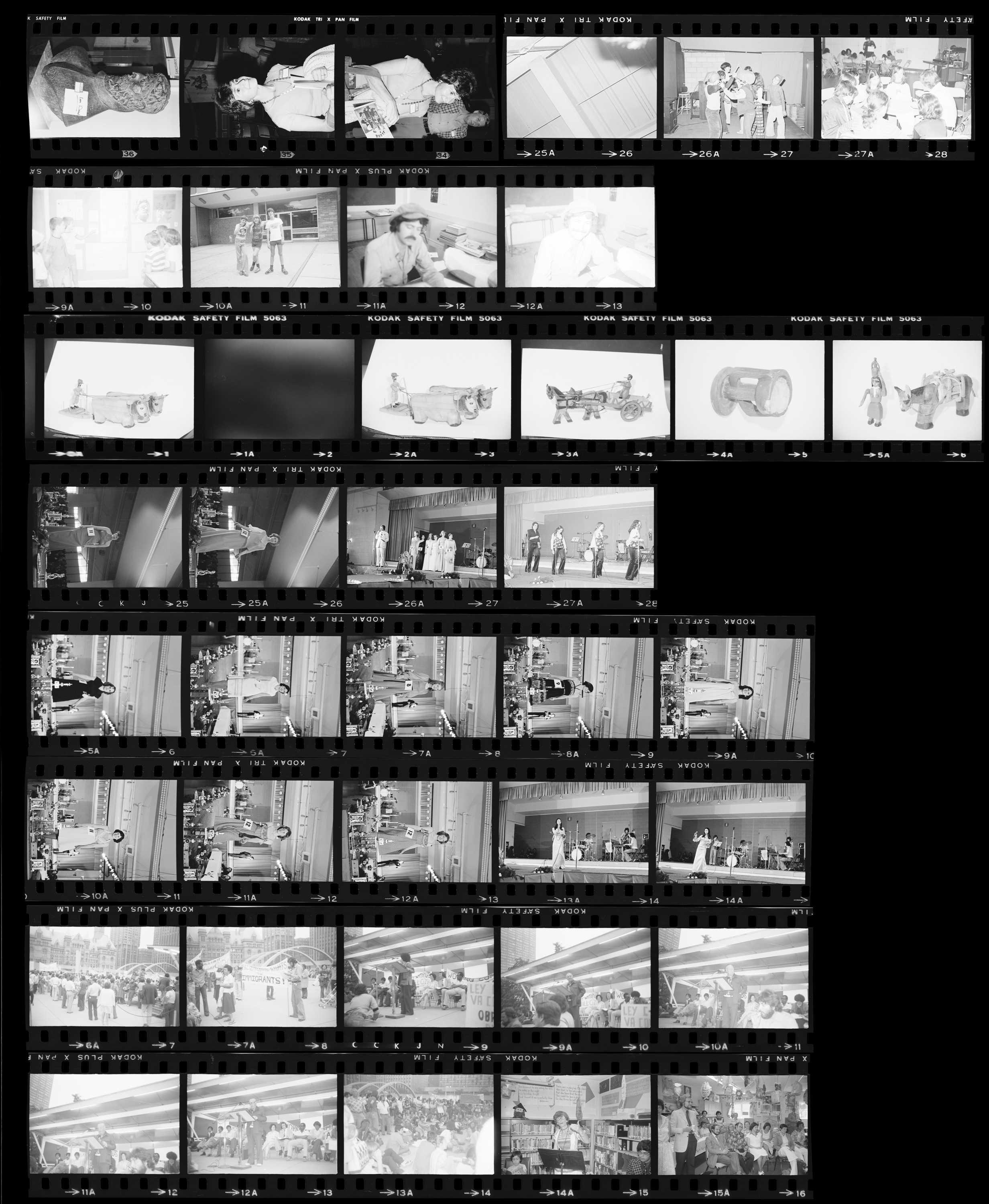 | dc.description | Contact sheet consists of 40 negatives, including; #36, bust with a comical tag, (“I’m dead”); #34-35, a woman at a community function; #25A, wasted shot; #26A-27A, 9A-11, children at a school including dancing practice with ‘traditional’ Portuguese hats; #11A-12A, portraits;# 1A, wasted shot; #1, 2A, craft sculpture of a man and two oxen; #3A, craft sculpture of man with horse and buggy; #4A, craft sculpture; #5A, craft sculpture of woman with horse; #25-28, 5A-14A, beauty pageant photos; #6A-13A, a protest calling for ‘Full Democratic Rights for Immigrants’; #14A-15A, a public lecture. | en |