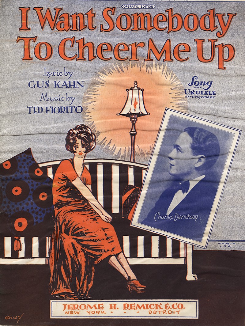 Portrait of Charles Derickson; Lady sitting on a sofa [illustration]