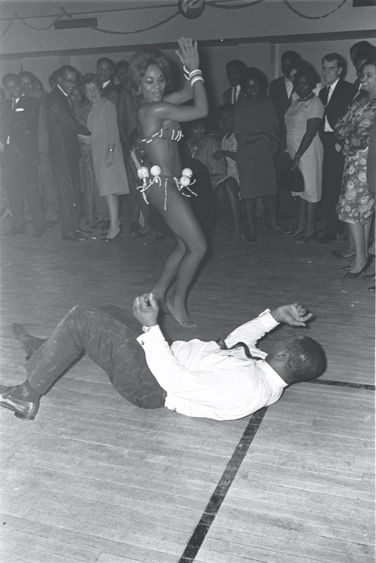 | dc.description.abstract | Image of barefoot woman, wearing decorative bikini and bracelets, clapping and dancing above man lying on wooden floor, with onlookers standing near wall decorated with paper garlands in background | en_US |