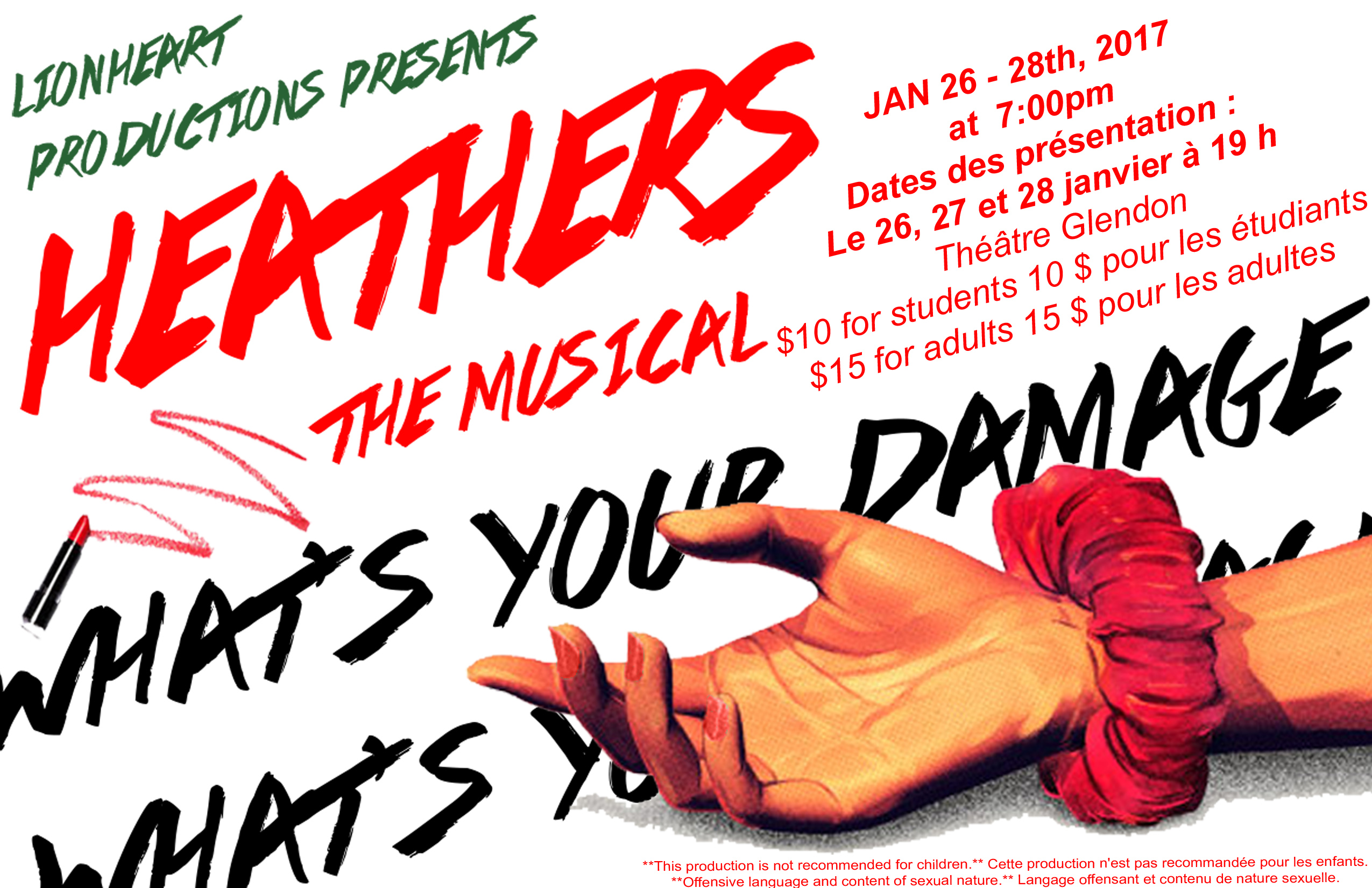 The archival file of Kevin Murphy and Laurence O'Keefe's "Heathers," directed by Pascale Lachance. This play ran from January 26 - 28, 2017.